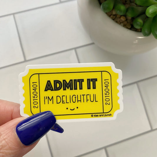2 Inch Funny Admit It I'm Delightful Ticket Diecut Vinyl Sticker