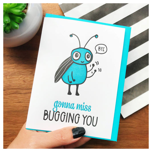 Funny Goodbye Letterpress Card | Bug | Gonna Miss Bugging You | kiss and punch