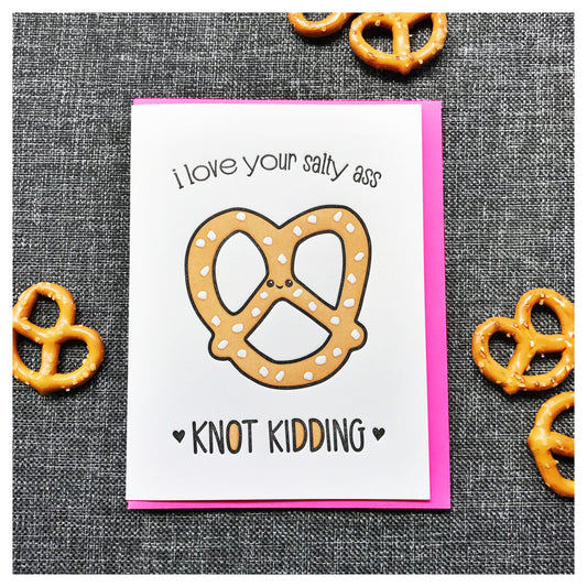 Funny Love Letterpress Card | I Love Your Salty A$$ Knot Kidding | Pretzel | kiss and punch