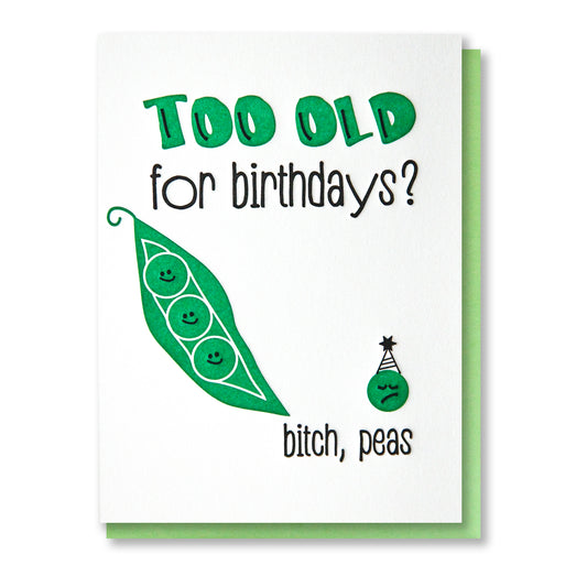 Funny Snarky Punny B*tch Peas | Over the Hill Birthday | Letterpress Card | kiss and punch