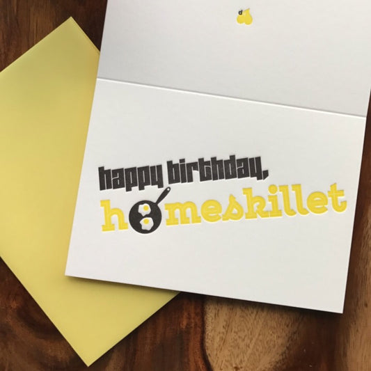 Funny 90s Themed Homeskillet Birthday Letterpress Card | kiss and punch