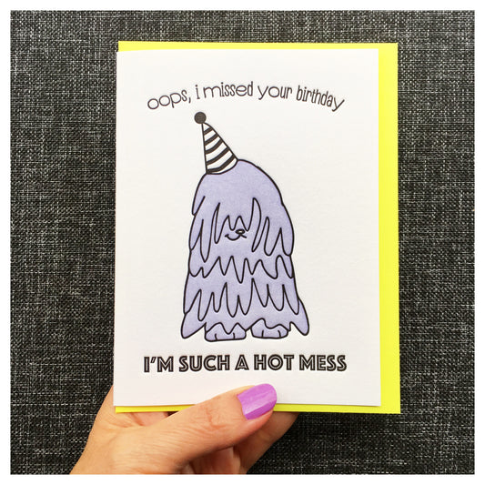 Funny Belated Letterpress Birthday Card | Mop Dog | Komondor | Hot Mess | kiss and punch