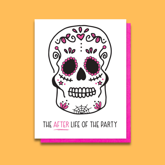 Funny After Life of the Party Sugar Skull Halloween Letterpress Card