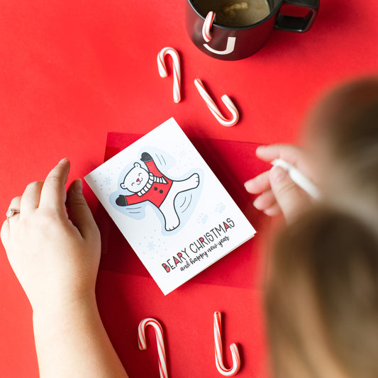 Cute Beary Snow Angel Christmas Letterpress Card | kiss and punch