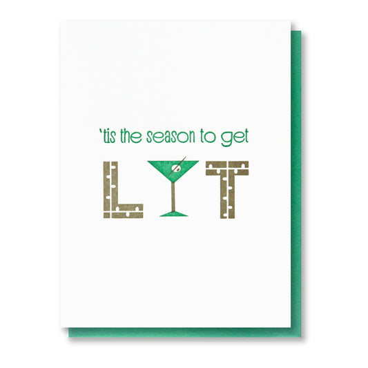 Funny Get Lit Martini Glass Holiday Letterpress Card | kiss and punch