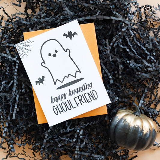 Funny Halloween Letterpress Card | Happy Haunting Ghoul Friend | kiss and punch
