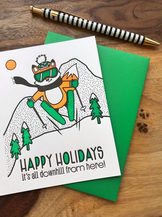 Funny Downhill Holidays | Skiing Fox Letterpress Card | kiss and punch