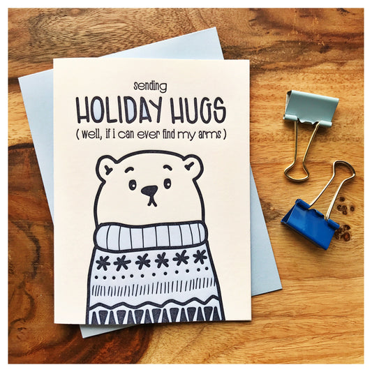 Funny Holiday Letterpress Card | Sending Hugs | Polar Bear Ugly Sweater | kiss and punch
