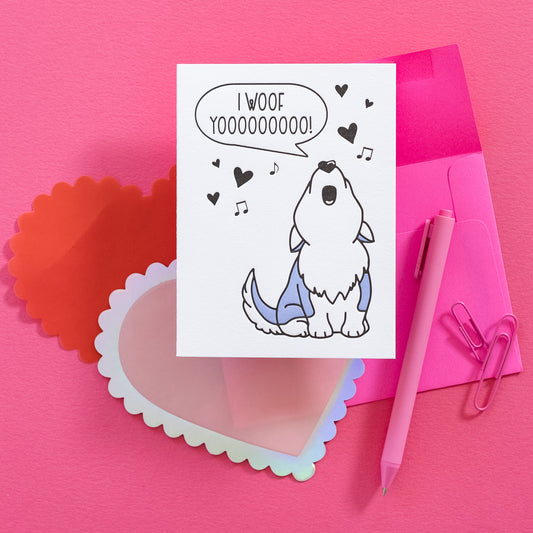 Funny Singing Howling Husky Dog Letterpress Card | I Love You | Valentine's Day