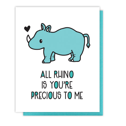 Cute Rhino Pun Love Friendship Letterpress Card | kiss and punch