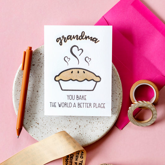 Grandma Letterpress Card | Pie Pun | Bake the World | Birthday Mother's Day | kiss and punch