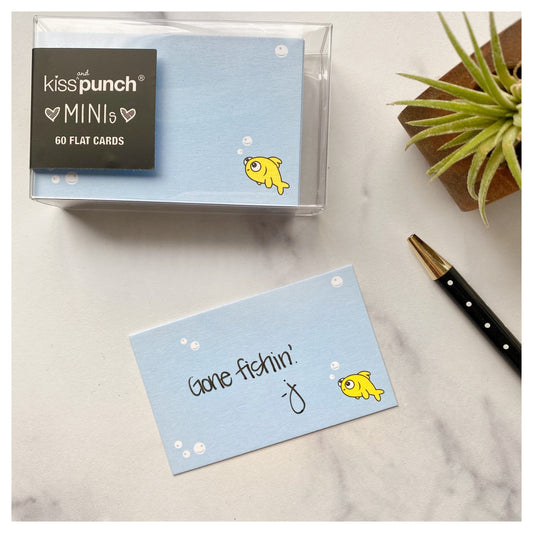 Mini Notecard Set of 60 - Fish Flat Cards - Lunch Notes - Mini Cards - Enclosure cards