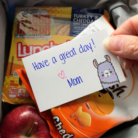 Mini Notecard Set of 60 - Llama Flat Cards - Lunch Notes - Mini Cards - Enclosure cards