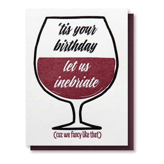 Funny Inebriate Wine Birthday Letterpress Card | kiss and punch