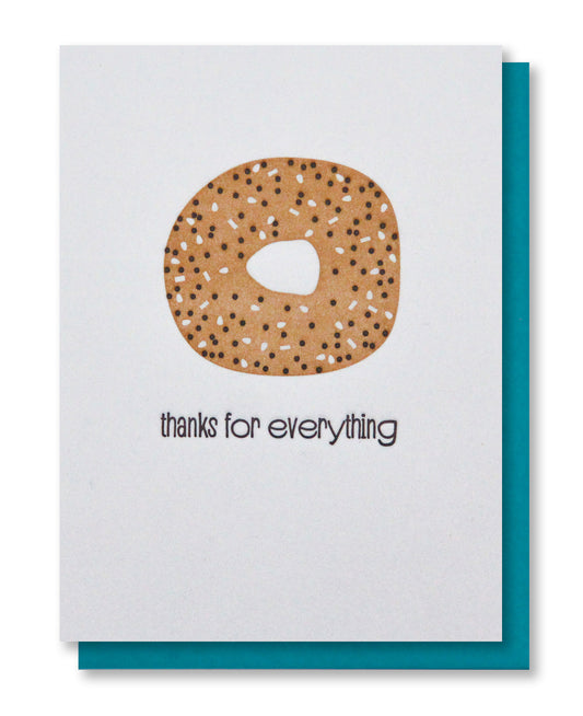 Funny Punny Everything Bagel Foodie Thanks Letterpress Card | kiss and punch