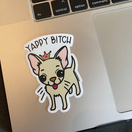 3 Inch Yappy Bitch Chihuahua Dog Diecut Vinyl Sticker | kiss and punch
